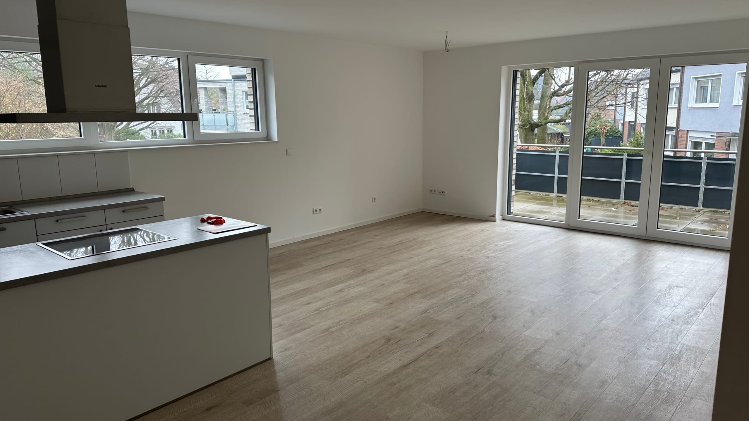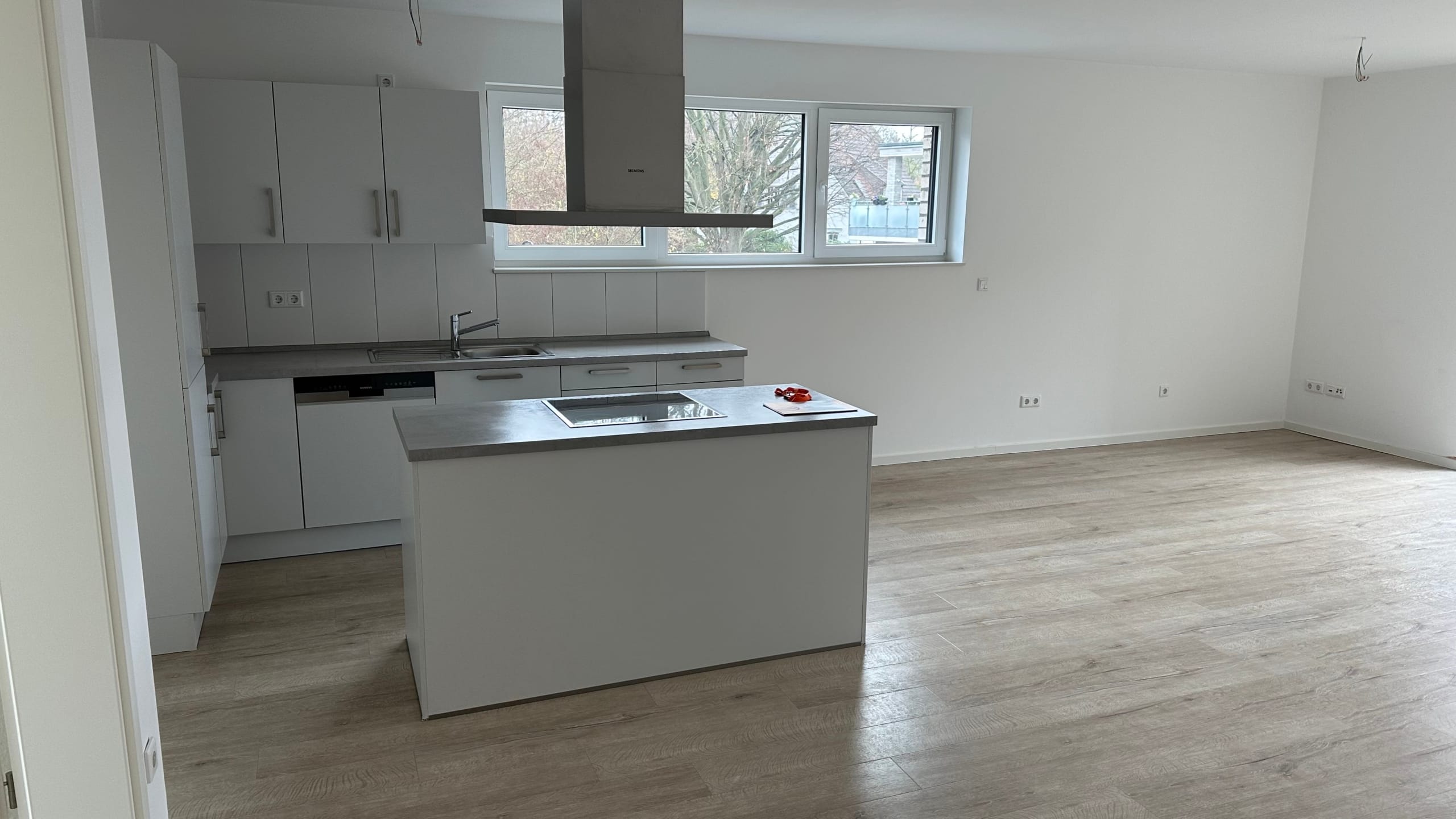 Die Wohnung hat eine offene Küche mit Kochinsel, ausgestattet mit EBK Inkl. Elektrogeräten, die Monatlich 70,00€ zur Nutzung steht.