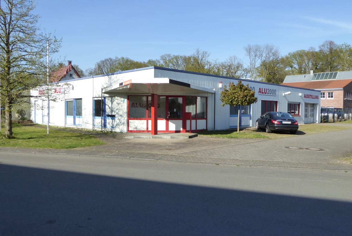 Freistehende Gewerbehalle mit Ausstellungsfläche Büro u. Freifläche
